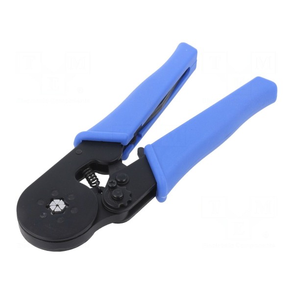 Narzędzie służy do zaciskania końcówek tulejkowych izolowanych oraz nieizolowanych, zarówno w wersji pojedynczej, jak i podwójnej. Przeznaczone jest do pracy z przewodami o przekroju od 1 mm² do 5 mm². Kształt matrycy zapewnia sześciokątny profil zaciśnięcia połączenia.