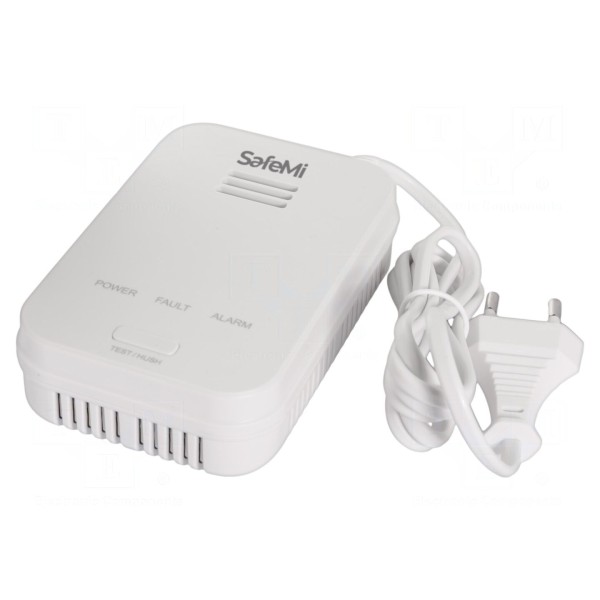 Wykrywacz gazu SafeMi SHG-02 przeznaczony jest do monitorowania stężenia metanu (CH4) oraz mieszaniny propan-butan (LPG). Urządzenie pracuje w zakresie temperatur od -20 do 60°C i jest zasilane napięciem 230V AC. Konstrukcja spełnia wymogi normy EN 50194-1:2009.