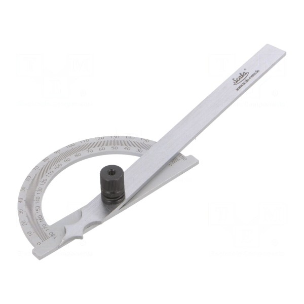 Kątomierz regulowany, zakres pomiarowy 0–180°, długość ramienia 120mm