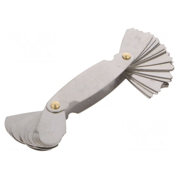 Promieniomierz marki SCALA przeznaczony jest do sprawdzania i weryfikacji promieni krzywizn elementów mechanicznych. Narzędzie obsługuje zakres pomiarowy od 7,5 do 15 mm.