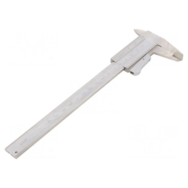 Całkowita długość pomiarowa suwmiarki wynosi 150mm, co odpowiada 0,15m. Konstrukcja została przystosowana do specyfiki pracy użytkowników leworęcznych.