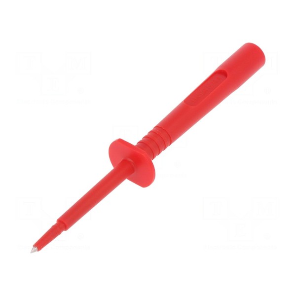 Końcówka pomiarowa o długości 133 mm przeznaczona jest do pracy z prądem znamionowym 16 A oraz napięciem znamionowym 1 kV DC. Element wyposażony jest w gniazdo o średnicy 4 mm, co zapewnia kompatybilność z wieloma standardowymi przewodami pomiarowymi. Konstrukcja wykorzystuje niklowane pokrycie styków, co pozwala na zachowanie niskiej rezystancji stykowej na poziomie maksymalnie 5 mΩ.