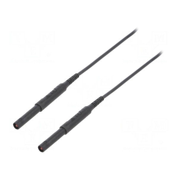 Przewód pomiarowy wyposażony w wtyki bananowe 4mm z obu stron. Produkt charakteryzuje się napięciem znamionowym wynoszącym 6kV dla prądu zmiennego oraz 6kV dla prądu stałego, przy prądzie znamionowym 16A. Długość przewodu wynosi 1,5m, a jego przekrój to 1,3mm².