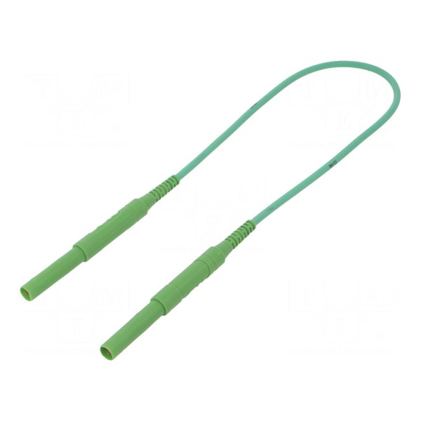 W produkcie zastosowano przewód o przekroju 1,3 mm² z izolacją wykonaną z silikonu, która umożliwia pracę w zakresie temperatur od -10°C do 90°C. Styki elementu zostały poddane niklowaniu, co przekłada się na maksymalną rezystancję styku wynoszącą 9 mΩ. Przewód wyróżnia się zieloną kolorystyką, ułatwiającą identyfikację obwodów w rozbudowanych układach pomiarowych.