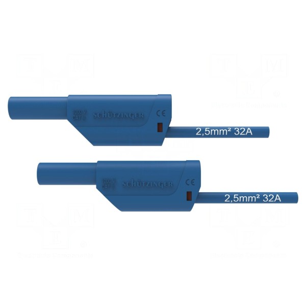 Przewód pomiarowy marki SCHÜTZINGER o długości 1 metra został zaprojektowany do pracy z prądem znamionowym wynoszącym 32A. Element charakteryzuje się przekrojem przewodu 2,5mm² oraz izolacją wykonaną z PVC. Niebieski kabel jest zakończony z obu stron izolowanymi wtykami bananowymi 4mm, które wyposażono w dodatkowe gniazdo osiowe 4mm.