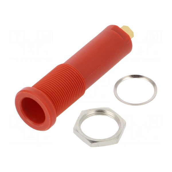 Złącze bananowe 4mm, gniazdo, 16A, 6kV, czerwone