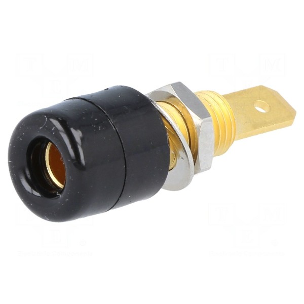 Złącze bananowe 4mm typu gniazdo przeznaczone jest do montażu panelowego. Komponent charakteryzuje się izolowaną konstrukcją oraz złoconym pokryciem styków, co zapewnia rezystancję styków na poziomie 3mΩ.