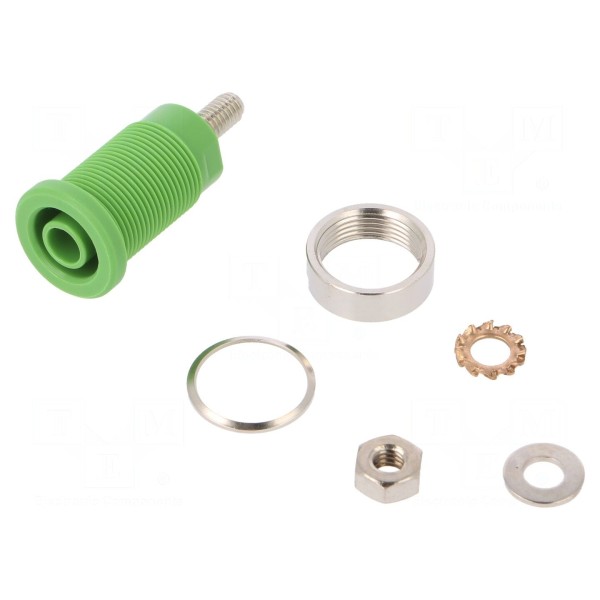Gniazdo bananowe 4mm, 32A, montaż panelowy, kolor zielony
