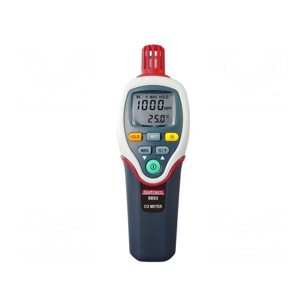 Miernik SEFRAM 9893 przeznaczony jest do monitorowania stężenia tlenku węgla w powietrzu w zakresie od 0 do 1000 ppm z rozdzielczością 1 ppm. Urządzenie umożliwia także wykonywanie pomiarów temperatury, co czyni go funkcjonalnym narzędziem diagnostycznym. Model został wyposażony w podświetlany wyświetlacz, co ułatwia odczyt danych w warunkach o słabym oświetleniu.