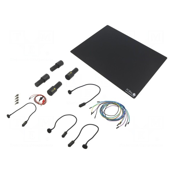 Sondy o średnicy 0,5mm umożliwiają precyzyjne doprowadzenie sygnału w ciasnych układach elektronicznych. Zestaw został zaprojektowany do pracy w warunkach temperatury od -40°C do 80°C. Wyposażenie standardowe obejmuje: 4 sondy PCBite SP10, 4 uchwyty PCBite, dużą płytkę bazową (A4), matę izolacyjną oraz komplet podkładek izolujących. W zestawie znajdują się również 4 dodatkowe igły do sond, 5 przewodów pomiarowych typu dupont-dupont, 2 przewody pomiarowe wtyk banan - gniazdo dupont oraz ścierka z mikrofibry.
