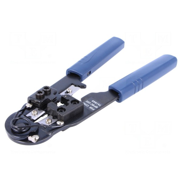 Narzędzie przeznaczone jest do zaciskania złączy typu RJ50 (10p10c). Konstrukcja wykonana została ze stali, a powierzchnia narzędzia poddana procesowi czernienia.