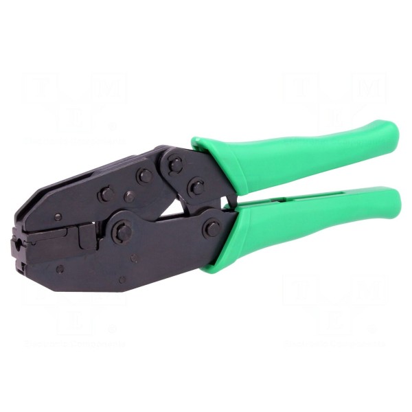 Narzędzie przeznaczone do zaciskania ekranowanych złączy typu RJ45 HIROSE (8p8c). Konstrukcja umożliwia jednoczesny montaż elementów stykowych złącza na żyłach przewodu oraz jego obudowy na ekranie, przy czym złącze i przewód są umieszczane w szczękach od strony czołowej.