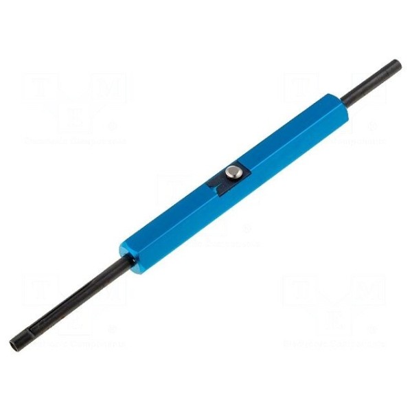Konstrukcja narzędzia jest przystosowana do pracy z przewodami o średnicy 0,25 mm, odpowiadającej standardowi 30AWG. Urządzenie o długości 115 mm zostało wyposażone w zintegrowane ostrze, które umożliwia zdejmowanie izolacji z końcówki przewodu bezpośrednio podczas pracy.
