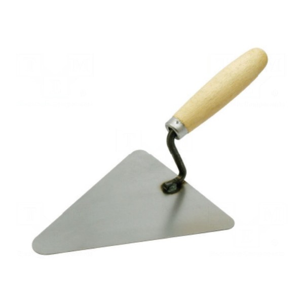Narzędzie typu kielnia w wersji trójkątnej przeznaczone jest do prac budowlanych oraz wykończeniowych. Konstrukcja wykonana została ze stali węglowej, co zapewnia parametry użytkowe odpowiednie do nanoszenia i wyrównywania mas budowlanych.
