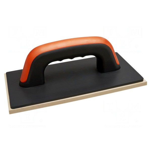 Narzędzie typu paca wykończeniowa wyposażone w gumową powierzchnię roboczą. Konstrukcja charakteryzuje się grubością 8mm, co zapewnia odpowiednią sztywność podczas prac wykończeniowych.