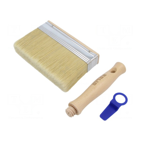 Narzędzie typu pędzel o szerokości roboczej wynoszącej 0,15m jest przeznaczone do prac związanych z tapetowaniem. Konstrukcja elementu umożliwia równomierne rozprowadzanie kleju oraz dociskanie tapet do powierzchni ściennych.