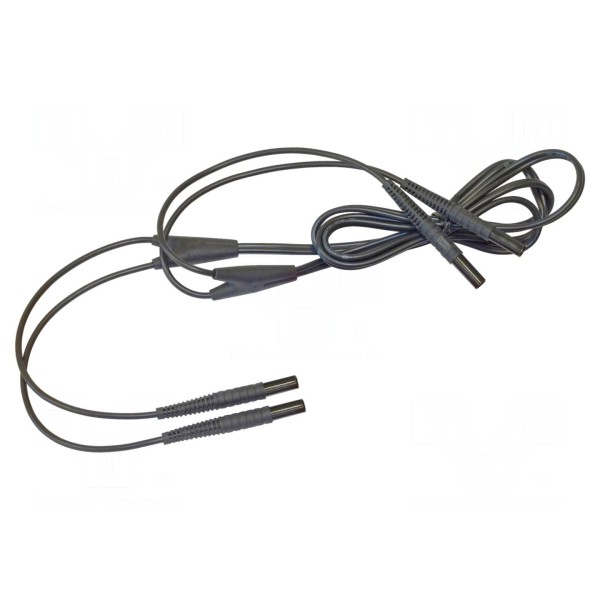 Przewód połączeniowy o długości 2 metrów wyposażony w izolowane wtyki bananowe 4mm umieszczone po obu stronach. Konstrukcja przewodu została przystosowana do pracy z urządzeniami pomiarowymi, zapewniając pewne połączenie w układach badawczych. Produkt wykonany w kolorze czarnym.
