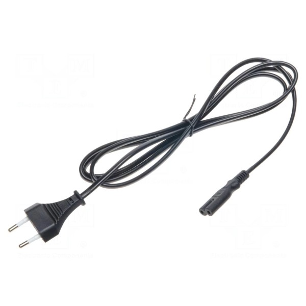 Przewód zasilający przeznaczony do urządzeń zasilanych prądem zmiennym na terenie Europy. Konstrukcja przewodu zakończona jest złączem typu IEC C7 w wersji żeńskiej.