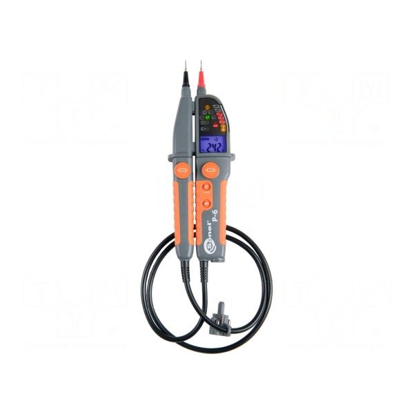 Tester elektryczny SONEL P-6 to urządzenie przeznaczone do pomiaru napięcia stałego (DC) w zakresie 6–1000V oraz napięcia przemiennego (AC) w zakresie 6–1000V przy częstotliwości 16–400Hz. Przyrząd umożliwia również pomiar rezystancji w zakresie 1–1999Ω oraz przeprowadzenie testu ciągłości obwodu z wykorzystaniem sygnału akustycznego i optycznego przy progu zadziałania poniżej 400kΩ. Dodatkowo model ten wspiera test wyłączników RCD ogólnego zastosowania.