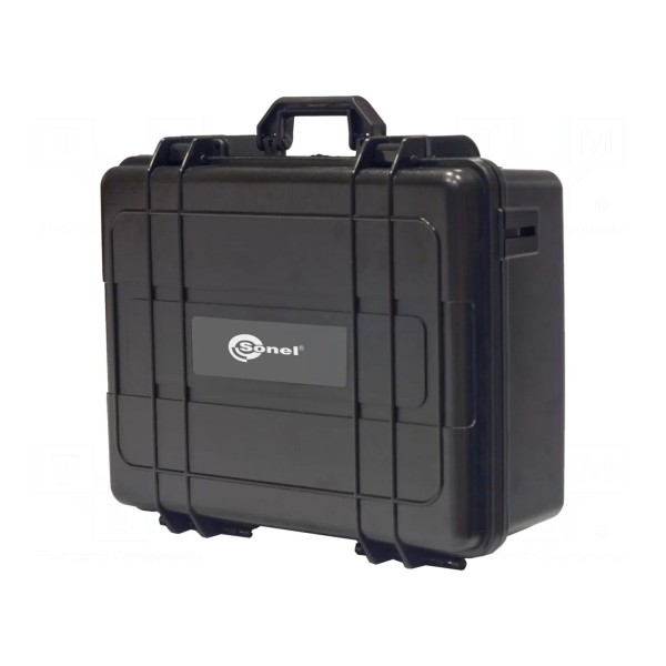 Akcesorium przeznaczone do bezpiecznego przechowywania i transportu przyrządów pomiarowych. Produkt wykonany jest z tworzywa sztucznego, co zapewnia usztywnienie konstrukcji i ochronę zawartości przed uszkodzeniami mechanicznymi podczas przenoszenia.