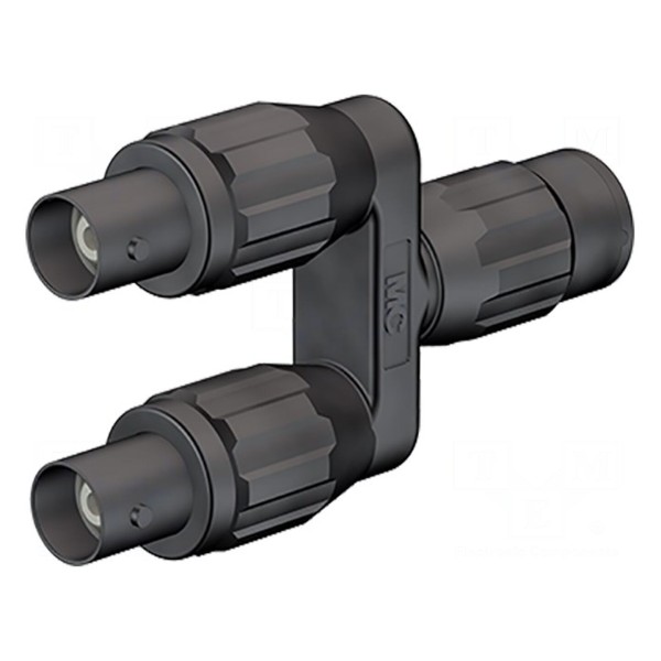 Adapter BNC w kolorze czarnym przeznaczony jest do systemów pomiarowych. Element posiada izolowaną konstrukcję oraz styki pokryte warstwą niklu, co wpływa na jego właściwości użytkowe.