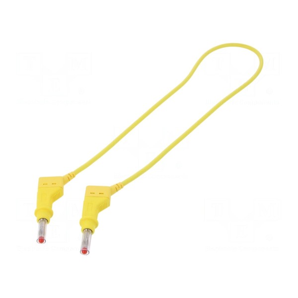 Przewód połączeniowy o długości 0,5 m przeznaczony do zastosowań pomiarowych. Element charakteryzuje się prądem znamionowym 32 A oraz obustronnym zakończeniem w postaci wtyków bananowych 4 mm.