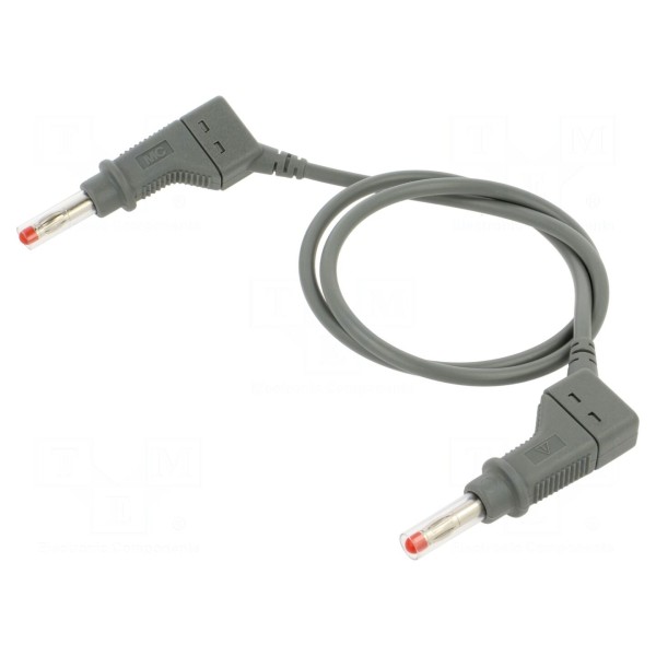 Przewód połączeniowy o długości 0,5 m został wyposażony w wtyki bananowe 4 mm umieszczone po obu stronach. Konstrukcja złącza obejmuje izolację, gniazdo osiowe 4 mm oraz suwaną osłonę, co wpływa na sposób obsługi przyłącza. Styki elementu zostały poddane niklowaniu.