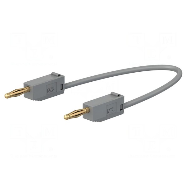Parametry elektryczne akcesorium pozwalają na pracę przy napięciu znamionowym 30 V AC oraz 60 V DC przy obciążeniu prądowym do 10 A. Element charakteryzuje się nieizolowaną wersją złącza oraz złoconym pokryciem styków, co wpływa na parametry połączenia. Przewód utrzymany jest w szarym kolorze.