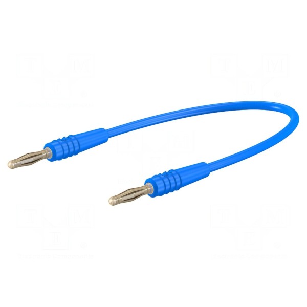 Przewód pomiarowy o długości 0,3 m wyposażony w wtyki bananowe 2 mm umieszczone po obu stronach. Konstrukcja elementu obejmuje nieizolowane złącza z powierzchnią styków pokrytą warstwą złota, co wpływa na parametry połączeniowe.