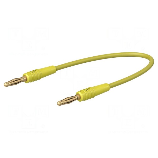 Przewód pomiarowy STÄUBLI o długości 0,3 m wyposażony jest w nieizolowane wtyki bananowe 2 mm umieszczone po obu stronach. Konstrukcja bazuje na przewodzie o przekroju 0,5 mm² w izolacji z PVC w kolorze żółtym.