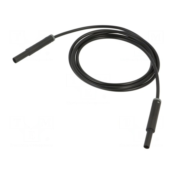Przewód pomiarowy o długości 1,5 m przeznaczony jest do transmisji sygnałów elektrycznych przy zachowaniu wysokich parametrów bezpieczeństwa. Wyposażony jest w izolowane złącza typu bananowego 4 mm, w tym gniazdo oraz wtyk. Konstrukcja opiera się na przewodzie o przekroju 1 mm² wykonanym z izolacją z PVC, co zapewnia odpowiednią elastyczność i trwałość podczas eksploatacji.