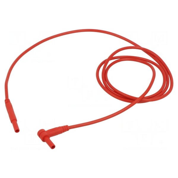 Przewód pomiarowy STÄUBLI o długości 1 m wyposażony jest w dwa wtyki bananowe 2 mm, z których jeden jest wtykiem kątowym. Konstrukcja charakteryzuje się przekrojem żyły 0,5 mm² oraz zastosowaniem izolacji wykonanej z silikonu. Złącza posiadają złocone styki oraz izolowaną obudowę, co wpływa na parametry styku elektrycznego.