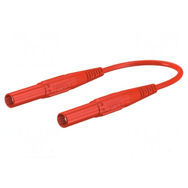 Przewód pomiarowy charakteryzuje się prądem znamionowym 19A i długością wynoszącą 0,5m. Konstrukcja elementu opiera się na obustronnym zakończeniu izolowanymi wtykami bananowymi o średnicy 4mm. Produkt utrzymany jest w kolorze czerwonym.