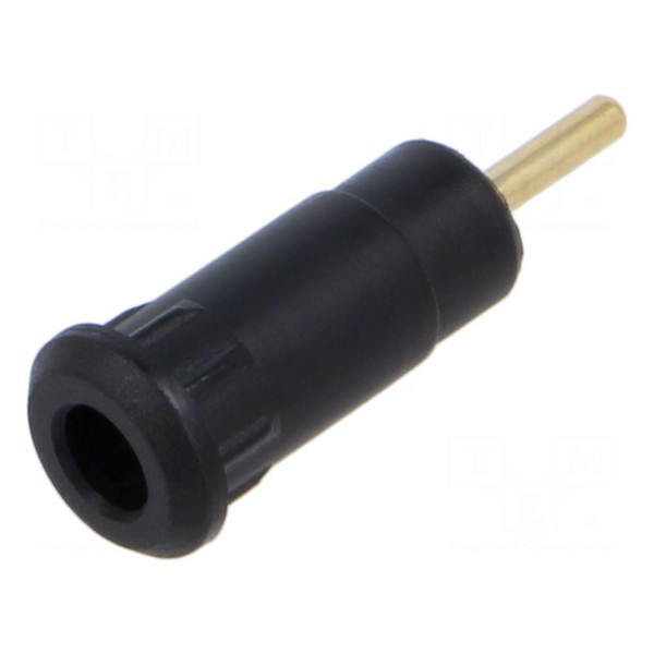 Gniazdo bananowe o średnicy 1,5mm przeznaczone jest do montażu na panelu metodą wciskaną. Złącze posiada izolowaną konstrukcję oraz styki pokryte warstwą złota, co zapewnia trwałość połączenia. Element jest przystosowany do otworu montażowego o średnicy 10,5mm.