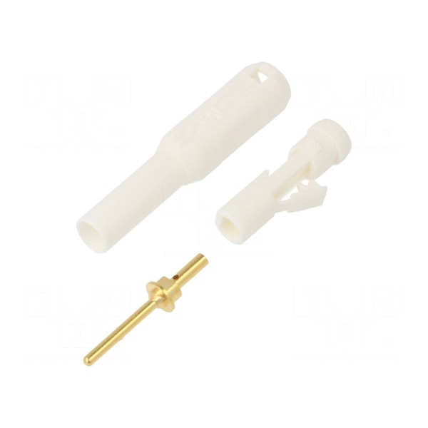 Złącze bananowe 1,5mm w wersji izolowanej przeznaczone jest do połączeń lutowanych lub zaciskanych. Wtyk został wyposażony w pozłacany styk, co zapewnia odpowiednie parametry połączeniowe. Element posiada korpus wykonany z poliamidu w kolorze białym.