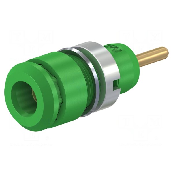 Gniazdo bananowe 2mm 10A, montaż na panel, zielone