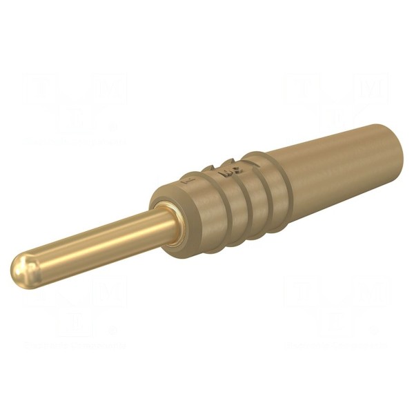 Styk złącza został poddany procesowi złocenia, co wpływa na jego parametry stykowe. Montaż przewodu o maksymalnej średnicy 0,5mm odbywa się poprzez lutowanie. Komponent posiada brązowy kolor obudowy, a jego całkowita długość wynosi 27mm.