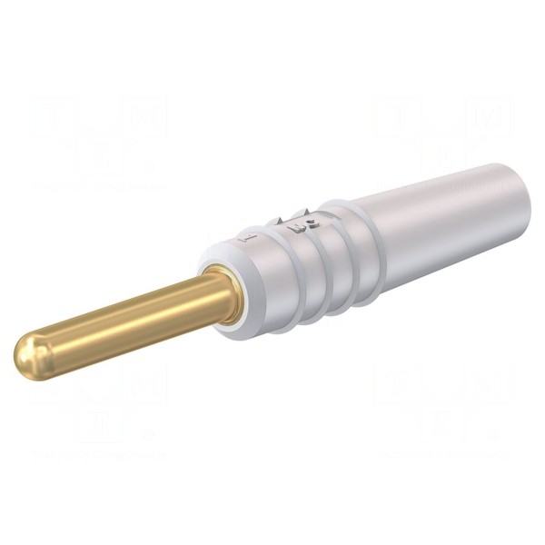Złącze laboratoryjne typu wtyk bananowy 2mm przeznaczone jest do pracy przy prądzie znamionowym wynoszącym 10A oraz napięciu znamionowym 30V AC lub 60V DC. Produkt charakteryzuje się złoconym pokryciem styków, co zapewnia stabilność połączeń w aplikacjach pomiarowych i laboratoryjnych.