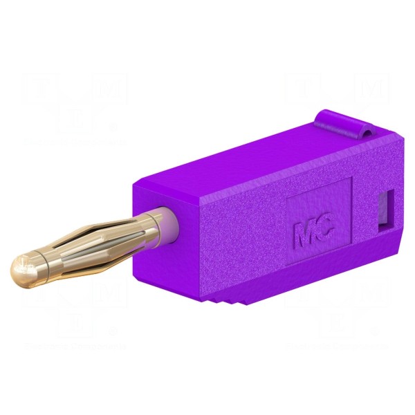 Produkt wykończony jest w kolorze fioletowym. Złącze znajduje zastosowanie w aplikacjach laboratoryjnych wymagających precyzyjnych połączeń typu bananowego.