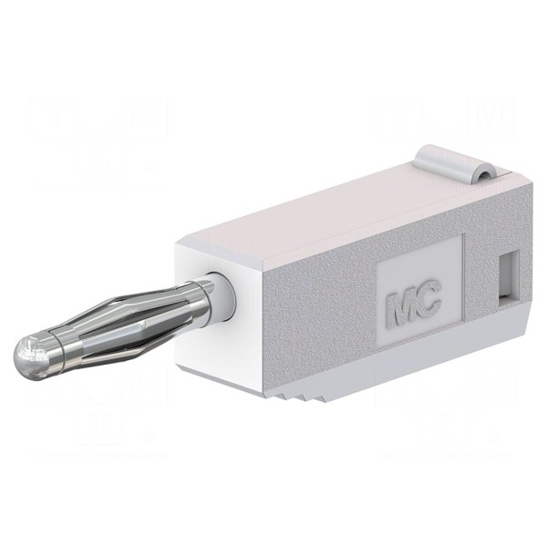 Złącze bananowe 2mm, wtyk, 10A, 30VAC/60VDC, biały