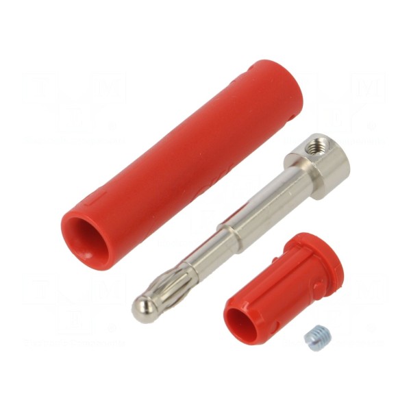 Konstrukcja elementu jest nieizolowana, a styk został poddany procesowi niklowania. Montaż przewodu o przekroju do 2,5mm² odbywa się poprzez połączenie przykręcane, przy czym maksymalna średnica przewodu wynosi 4,6mm. Złącze występuje w kolorze czerwonym i jest zgodne z normą EN 61010.