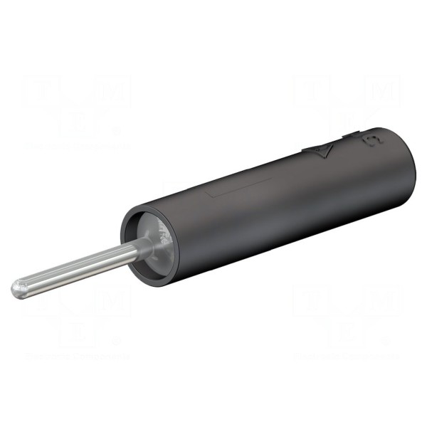Montaż złącza odbywa się w sposób śrubowy lub poprzez zaciskanie, co pozwala na stabilne osadzenie przewodu. Całkowita długość elementu wynosi 37,8 mm, a obudowa wykonana jest w kolorze czarnym. Konstrukcja spełnia wymogi normy EN 61010 w kategorii bezpieczeństwa CAT II 1000V.