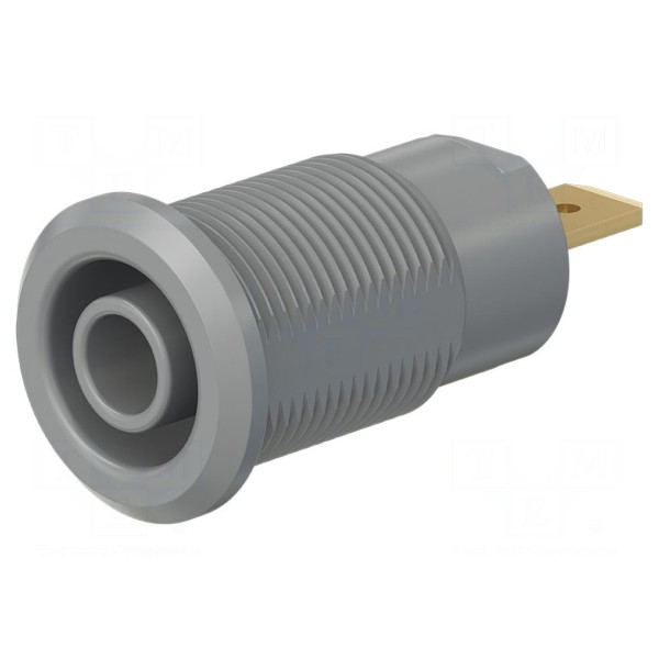 Złącze laboratoryjne typu bananowego o średnicy 4mm występuje w wersji izolowanego gniazda. Element został zaprojektowany do pracy przy napięciu znamionowym 1kV oraz prądzie znamionowym 24A, zapewniając przy tym parametry zgodne z normą EN 61010 oraz wymogami kategorii bezpieczeństwa CAT III 1000V.