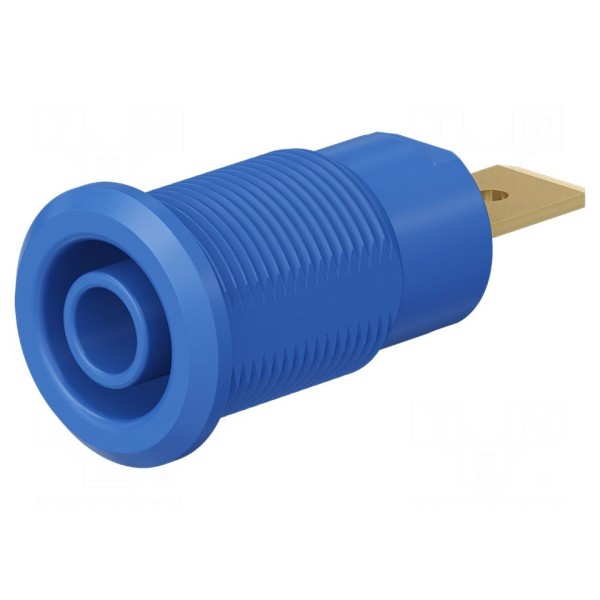 Złącze laboratoryjne typu gniazdo bananowe 4mm przeznaczone jest do pracy pod napięciem znamionowym 1kV przy natężeniu prądu do 32A. Element został wykonany z mosiądzu, a jego styki poddano procesowi złocenia w celu zapewnienia odpowiednich parametrów połączeniowych. Konstrukcja złącza jest izolowana i spełnia wymagania normy bezpieczeństwa EN 61010 dla kategorii CAT III 1000V.