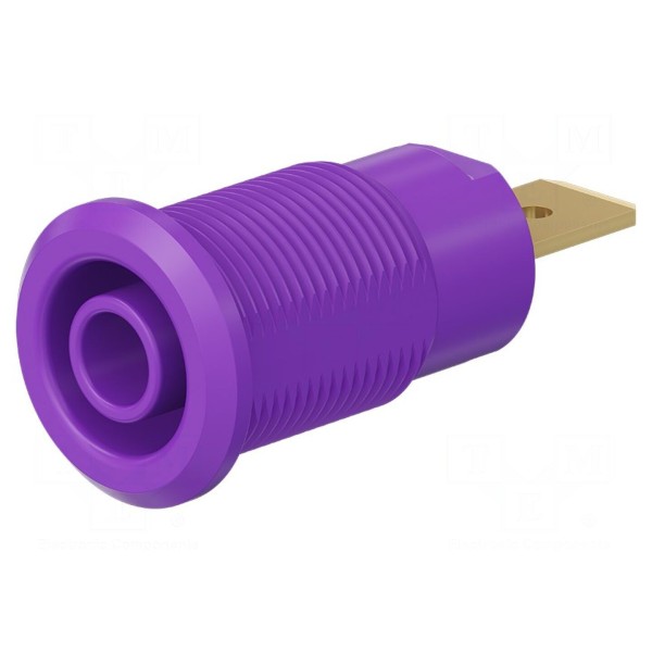 Montaż złącza odbywa się poprzez lutowanie, przykręcanie lub osadzenie na panelu, co umożliwia uniwersalne zastosowanie w sprzęcie laboratoryjnym i pomiarowym. Wymagana średnica otworu montażowego wynosi 12,2mm, natomiast całkowita długość elementu to 33mm. Złącze oferowane jest w kolorze fioletowym.