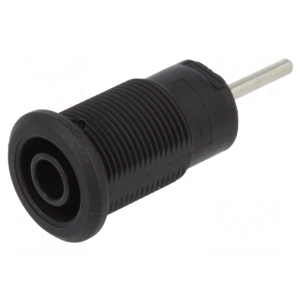 Złącze bananowe typu gniazdo 4mm przeznaczone jest do zastosowań laboratoryjnych. Element charakteryzuje się napięciem znamionowym 1kV oraz prądem znamionowym 24A, co umożliwia jego wykorzystanie w układach wymagających stabilnego połączenia elektrycznego.