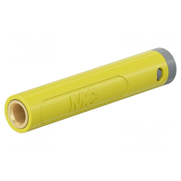 Konstrukcja gniazda przystosowana jest do montażu lutowanego na przewodach o maksymalnym przekroju 2,5 mm² i średnicy zewnętrznej do 3,9 mm. Komponent posiada żółty kolor izolacji oraz długość całkowitą 43,5 mm. Urządzenie jest zgodne z normą EN 61010.
