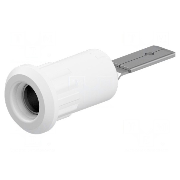 Konstrukcja gniazda posiada niklowane pokrycie styków, co wpływa na parametry połączeniowe elementu. Złącze w kolorze białym ma całkowitą długość 29,5mm i jest dostosowane do standardowych wtyków o rozmiarze 4mm.