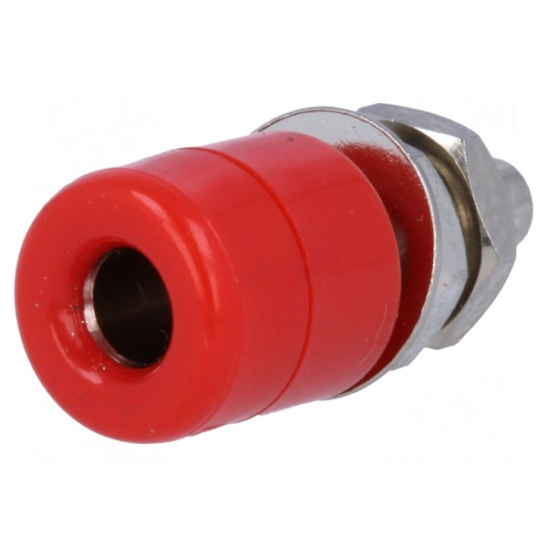 Gniazdo bananowe 4mm, 20A, montaż panelowy, izolowane czerwone