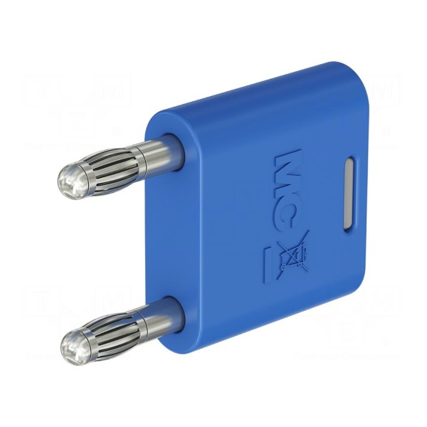 Złącze laboratoryjne bananowe 4mm przeznaczone jest do połączeń elektrycznych w układach testowych. Element posiada konstrukcję typu gniazdo 4mm x2 oraz wtyk 4mm x2, co umożliwia rozgałęzienie lub przekierowanie sygnału pomiarowego. Komponent wykonany został w wersji izolowanej w kolorze niebieskim.